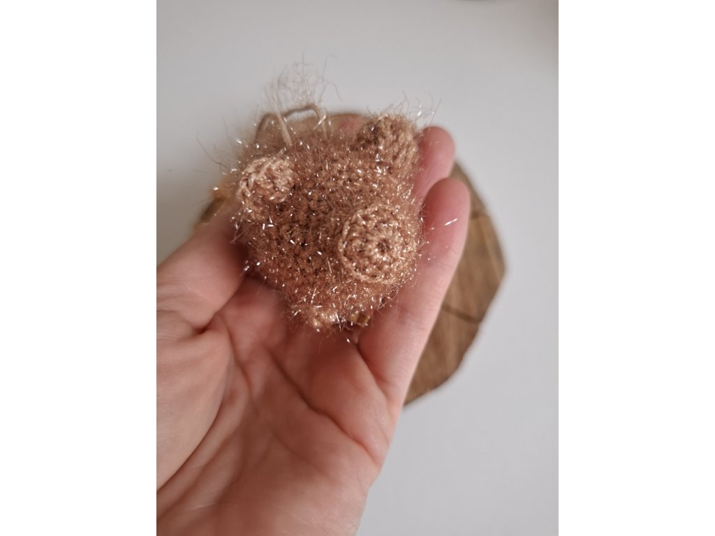 Je háčkované z chlupaté zlaté příze a plněné dutým vláknem.