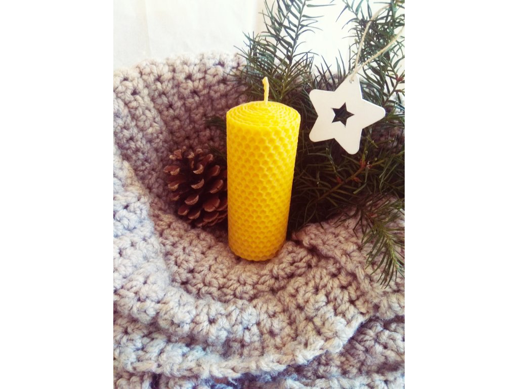 Tato svíce je ručně umotaná z mezistěny ze včelího vosku.