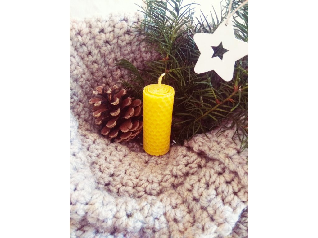 Tato svíce je ručně umotaná z mezistěny ze včelího vosku.
