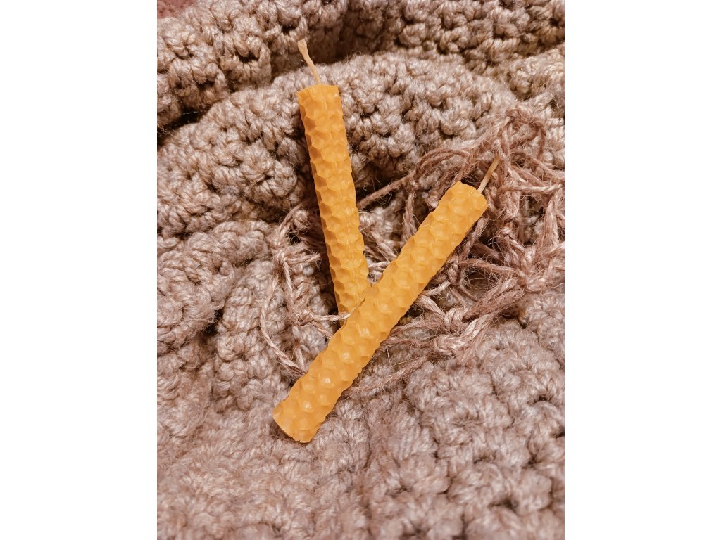 Tato svíce je ručně umotaná z mezistěny ze včelího vosku.